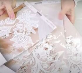 To begin my lamp makeover, I headed to my local fabric store to find some lace appliqués. After searching through the wedding dress section, I found a set that caught my eye. Normally, they would have been quite expensive, but I was able to snag them from the discount rack at 75% off.