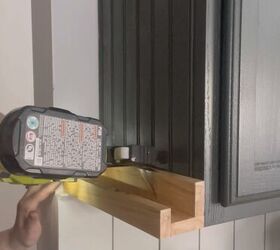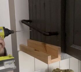 Next, I attached the shelf to my cabinets. I used my nail gun to pin it in place. I love the Ryobi battery operated nail gun for things like this! It’s so easy to use and you don’t have to worry about a compressor! My nail gun is probably my most-used tool!