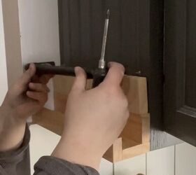 Once the shelf was in place, I added a couple screws from the inside of the cabinet into the back of the shelf. You can’t see these from the outside at all but it adds some extra strength.