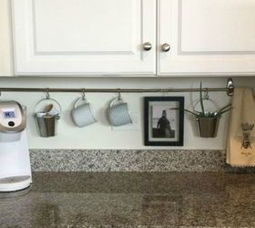 Use a curtain rod and some command hooks to hang all of those things that take up precious space. Get tutorial here