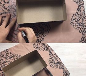 STEP 1: Wrap the fabric around the box to make sure it is large enough to cover all sides fully. Cut the fabric to size so there isn't too much or too little.