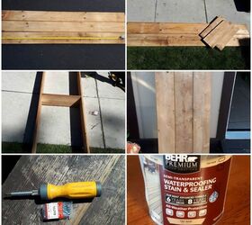 So while the paint was drying, it was time to make my bench. I purchased 6 boards from Home Depot that I will use to create my bench. I measured the length of my headboard to determine how big my bench would be. 53 inches. I cut my boards to desired length then began assembling my bench using wood screws. Once finished I stained with an outdoor semi transparent stain in a chestnut color.