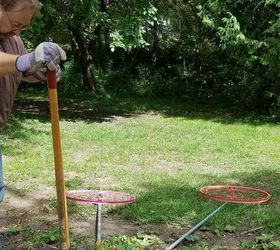 If you're putting the wheels with poles into the ground you'll need to dig some holes for them. Using a post hole digger is the easiest way to make small holes.