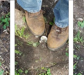 We had leftover pieces of PVC pipe so that's what we put into the ground. I think ours were about 18 inches or so in length. Once you've dug deep enough for yours drop it in, replace the dirt around the PVC pipe and drop your metal pipes into the PVC pipes. This holds them firmly in the ground but also allows you..or the wind...to swivel them around.