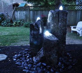 Uproot any ugly shrubs, thread the gurglers through, and hook the hose to the pump. Get tutorial here