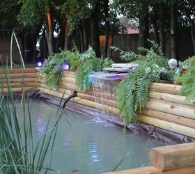 Screw in the LED lights before filling up the pond and surround with planter boxes. Get tutorial here