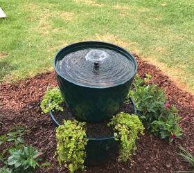 Once the product has dried, position the pump, I ended up centering it and then surrounded it with rocks from my yard to keep it in its place, I did have to go back in once I filled the fountain and tweek the position a bit once the fountain was on, it was leaning to one side, but it wasn't hard, and honestly, as hot as it is here in Georgia in Mid-August, it was pretty refreshing to play in the water! Haha