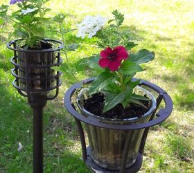 Fill each light with pretty flowers and then stand these beautiful little planters along your walkway, outside your porch, or anywhere that needs a little life!