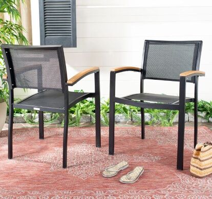 SAFAVIEH Outdoor Living Kaelan Chair - Black / Brown (Set of 2)