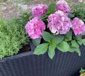 Now we have the outdoor table and chairs in place, the finishing touch was this gorgeous flower planter where I planted some fresh herbs and my favorite pink hydrangeas for some color.