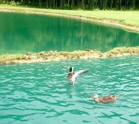 Patty you can have beautiful water too! Head over to tractor supply I know you have to have one of those around right ? Buy a packet of pond dyefor $9.99 throw it in your pond in 20 minutes you'll have beautiful water! I love your floating deck due to the fact I believe the ducks will get on it if it is floating in the middle of the pond! It would be a perfect getaway for them when those hungry snappers ( 🐢) Start to bother them !