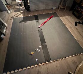I knew we needed a closed cell foam that wouldn’t absorb water. I found these foam floor mats sized 4’x8’. I bought two of these for the base.