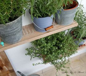 As for the other door, I cut it into half and made them into shelves for my potted herbs.