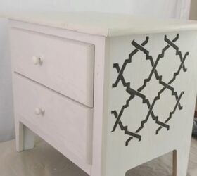 And here is the stenciled nightstand. I found this nightstand at Goodwill. It was a dirty and had a few scratches. I cleaned it with a magic eraser and the stencil covered most the scratches.