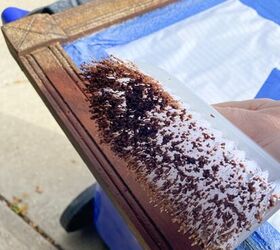 I used a scrub brush that I picked up from Walmart and it worked fine, but I linked better brushes up above under the supply list. I first saw this process done by Shannan from Tea House Designs. When she saw that I was trying it out, we were messaging back and forth about it. She has done it so many times that she has found the brushes linked above are the best. She will never use anything other than those brushes. She has tried almost everything and does this a lot, so I took her advice and ordered the brushes (which is the set I buy for my kitchen anyway).