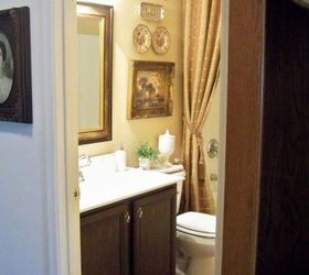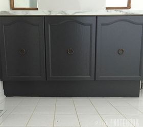 Staining the wood is simple way to enhance your vanity and your bathroom. Get tutorial here