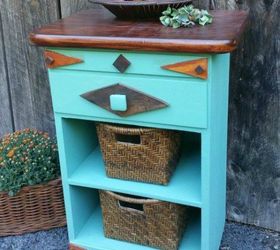 Add shapes to a boring blocky piece by attaching wooden cut outs and contrasting with colors. Get tutorial here