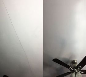 Here is a before and after of the crack I covered. Sometimes you will need to re-drill drywall into a beam beforehand or clean away broken pieces from the crack beforehand.