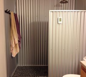 If you get new galvanized corrugated tin, you will never rust through it during your lifetime. I would recommend buying one of the fiberglass bases from Home Depot. I'm in the middle of doing the same thing. I bought a 3 ft by 5 ft base for $160. Just use a really good waterproof sealant. You can buy the fixed glass panels through home Depot also. I'm going to do that and just leave the shower open on one end. Trim it out on the exterior with barn wood. It will look awesome!