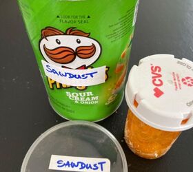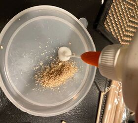 First you either make sawdust from sanding a piece of real wood or gather some sawdust from your workshop or from Home Depot near their panel saw. (Ask first , but I’ve never had an issue with grabbing some.) Had some odd looks, but never been told,”no”. Be sure to bring a small container or ziplock bag to put your sawdust into.
