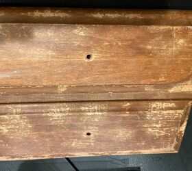Since this particular antique piece of furniture was originally painted with a glossy brown paint and had dings and missing hardware, it needed some serious refurbishing. The original mahogany wood was difficult to get completely sanded down since it had been previously painted with a brown semi gloss paint and then painted over that with a high gloss oil based paint. I decided to use chalk paint. Since the homemade filler is made with glue, you cannot use stain over it as the stain won’t take. In the photo below, you’ll see the “before” of this chest which is how it looked when I bought it.