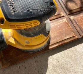 I use an orbital sander with whatever grade paper I have on hand. Since I paint most of my pieces with chalk paint, it doesn’t matter to me how fine of sandpaper I end up using. If you are concerned about sander marks, start with a coarser grade sandpaper and use a finer one after.