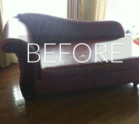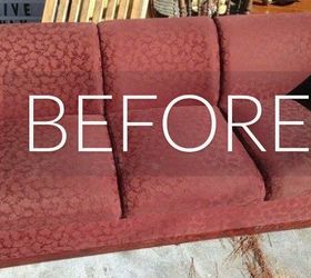 This red couch had good bones but had dark patches on its old red upholstery. Get tutorial here