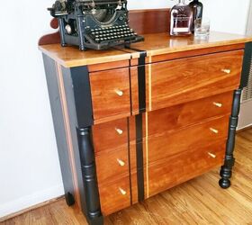 Paint a border, replace chunky legs, and add gold knobs to complete the look. Get tutorial here