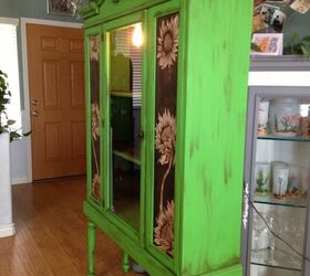 Create a customized hutch. Apply wood stain to the doors and draw on your own decorative floral accents. Stain with a dark wax to finish. Get tutorial here
