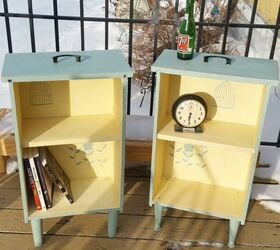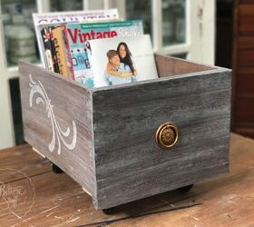 Add furniture legs, a shelf, and pretty painted stencils for decoration. Get tutorial here
