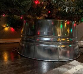 Repurpose a laundry basket into a faux galvanized metal tree skirt