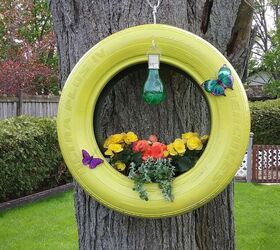 Hang a painted tire planter for a bright floral addition to the front of your house. Get tutorial here
