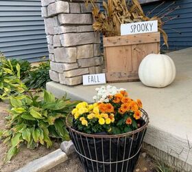 Create a welcoming front porch with a topsy turvy cheerful planter. Get tutorial here