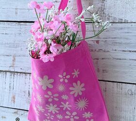 Decorate a tote bag and fill with flowers for an easy, inexpensive spring wall hanging. Get tutorial here