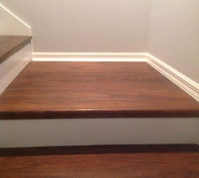 *** UPDATE *** I get a lot of questions on if my wood steps are slippery and if we have trouble with people falling on them. I really think this involves many factors that are individual to your situation. We lived in Florida at the time I put these steps in our house. Since it is almost always hot there, we didn't have a lot of sock-footed traffic on the stairs. I think that socks on stairs can be dangerous, either wood or carpet. Another factor for us, was the fact that only one bedroom was up these stairs. Pretty much only the teenager that was living up there, traveled up those stairs regularly and myself to clean. In addition, to these factors, my kids were older. All of them teenagers. Now in regard to the stairs themselves, I didn't spend a lot of time sanding these treads. I made sure they wouldn't have any super rough spots but I didn't spend hours sanding them ultra smooth. And those glossy super shiny wood floors you see? These stairs are beautiful but the poly that I planned to add, I never did. So maybe a super shiny poly would have made a difference. ***
