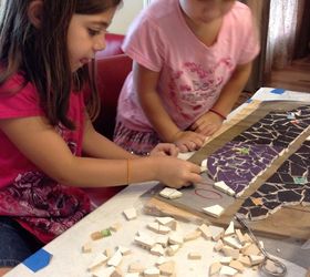 Fourth step was the fun part: We took some of the actual tile that was going to be part of the mosaic and laid it out on the taped together white paper to get a feel for what it would look like. Then, we just drew around our tile with a magic marker to get a pattern of the garden path and the flowers on each side. It wasn't detailed and it wasn't exact---remember, I just wanted the illusion of a garden path
