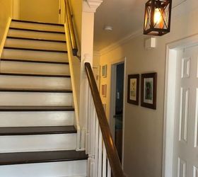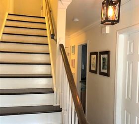 Voila! Our entry is much brighter and modern now with the old carpet gone! We also replaced the light fixture in the foyer to compliment our new stairs look.