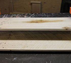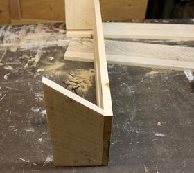For the inserts, using 4" wide boards, measure 9.25" up one side of the board and subtract the thickness of the base board you just cut. In my piece I used 1/2" thick boards so the mark would be placed at 8.75". On the opposite side of the board, measure up 6.25" and subtract the thickness of the base board (1/2" for me) and make your next mark. Score a line between the two marks (it should be the same miter angle as before for the side pieces) and make your cut. Repeat this process for each insert and sand pieces until smooth.