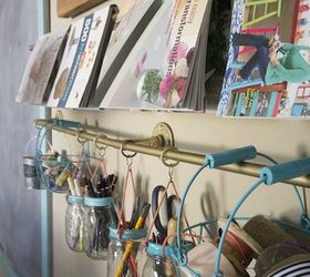 Then use S-hooks to hang baskets and other cute things that will keep your organized. Get tutorial here