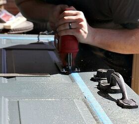 Next, carefully place your glass insert on the sawhorses with the screw side frame facing up and unscrew and remove the top frame.