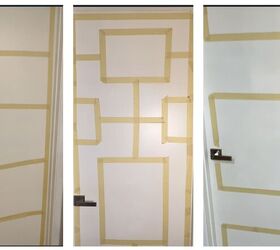 I noticed that my tape was the same width as the trim piece. So, I played with tape to come up with a design that I liked for my door. It helped me see the different ways that the trim could be applied and what different styles I could produce with it.