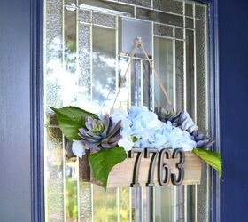 Plant fake flowers into a planter box and peel then stick on house letters. Get tutorial here
