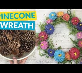 Gather yarn into a pom pom maker, cut off the extra, and hot glue the pom pom on the styrofoam wreath. Get tutorial here