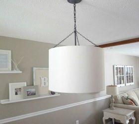 Hide the ugly bits of an old chandelier using a large, budget-friendly drum shade. Get tutorial here