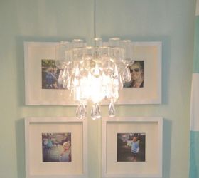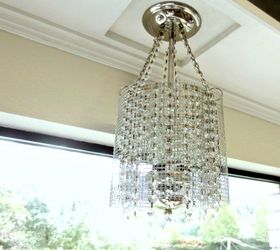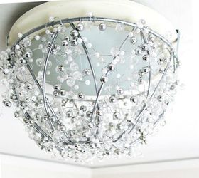 Dress up a boring chandelier with a simple coat of paint and strings of plastic gems. Get tutorial here