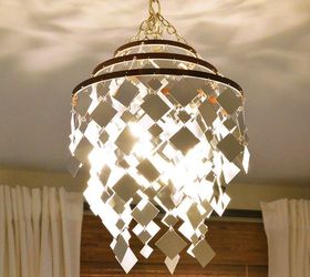 Make a reflective masterpiece by hanging layers of mirror squares around your DIY chandelier. Get tutorial here