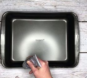 Place the wood frame on top of the glued edge of the baking pan Get tutorial here