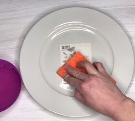 Make sure to place the sticky side down onto the plate in the spot where you want it. Get tutorial here