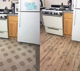 Clean down your floors first, and start unrolling the contact paper then trim off the excess. Get tutorial here