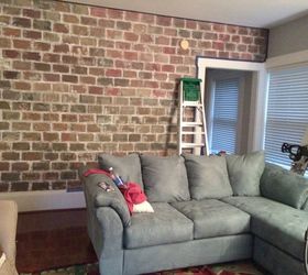 Begin by painting the wall gray, tape down the bricks to measure 4X8”, and apply compound. Get tutorial here